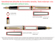 Možnosti umístění textů jsou znázorněné tlustou červenou čárou na obrázku níže s názvem "Umístění a barva rytiny". Jiné umístění textu není možné.